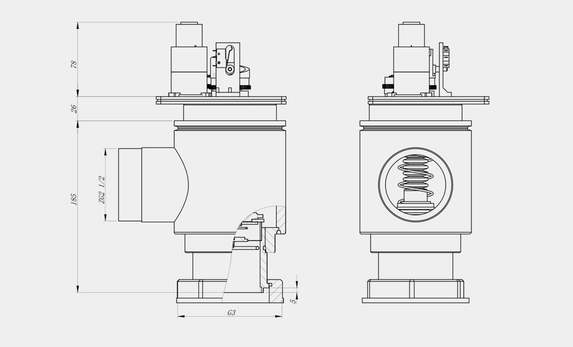 - 殼體內(nèi)后部設(shè)有包括減速箱的驅(qū)動(dòng)機(jī)構(gòu),減速箱前面封連有波紋管,波紋管前端封連有絲桿套,絲桿套后端連有絲母,減速箱輸出軸上連有絲桿位于所述波紋管內(nèi),絲母套配于絲桿,絲桿套前端連有閘板,由于采用密封,開(kāi)閥進(jìn)氣與出氣口在一條線上,這樣保證了氣流的順暢度,大大降低了壓損;
